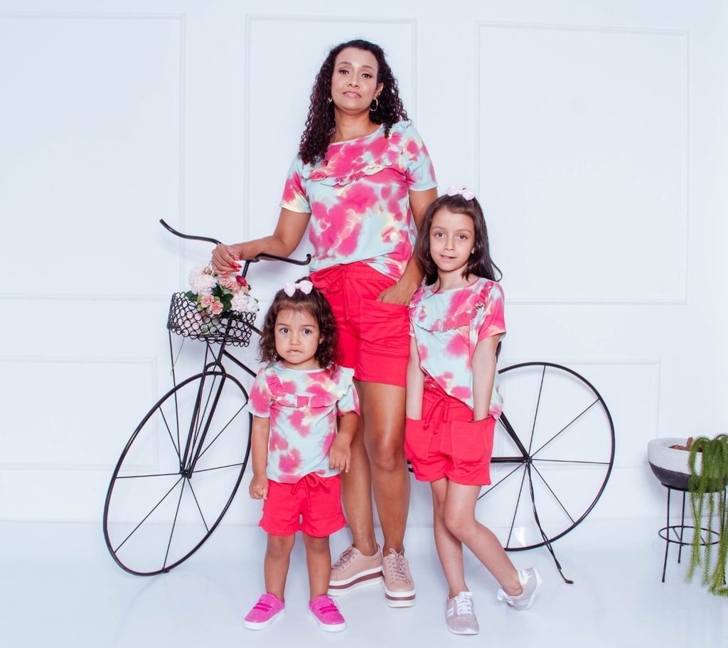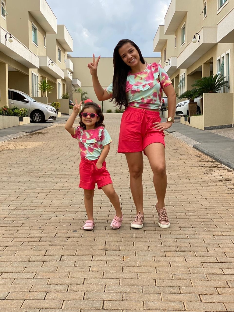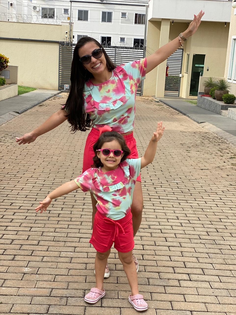 Conjunto Tie day com aplicação de paetês vai e vêm (coração/dupla face) em malha viscose com elastano. Super confortável e fresquinho para os dias quentes de verão.