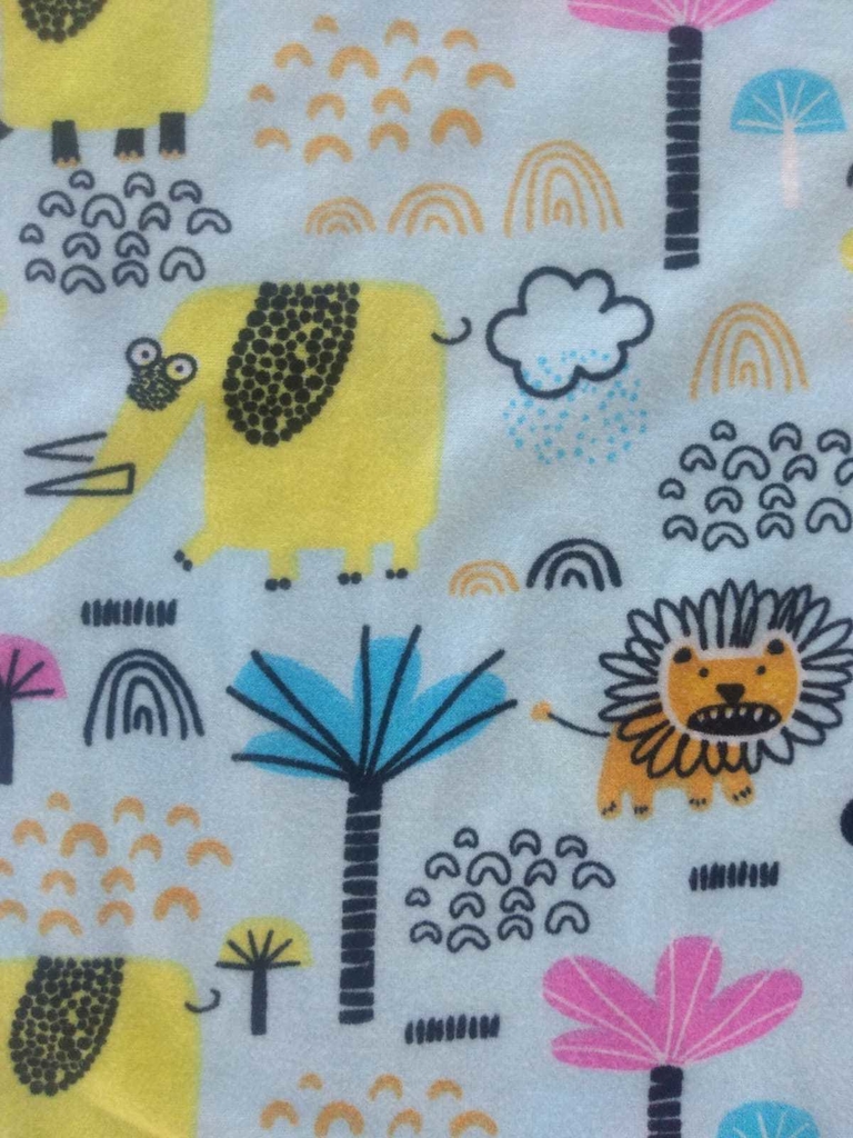 | Estampa | divertida azulada (com objetos do mundo infantil estilo safari) |