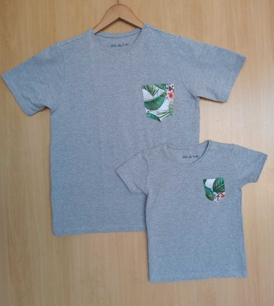 Camiseta em malha confort com bolso em tecido estampado, super confortável.