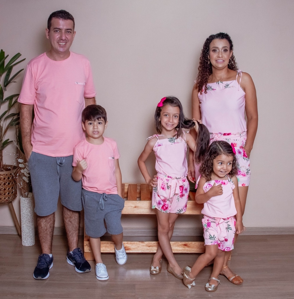 Na cor pêssego, o detalhe estampado sedinha no bolso compõem com a camiseta e o tecido com elástano garante mais a leveza.