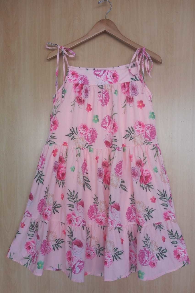 Vestido amplo super fluído e confortável de fácil vestibilidade, comprimento médio, com amarração no Ombro, podendo ser utilizado para lactantes pois facilita o acesso a mamas.
